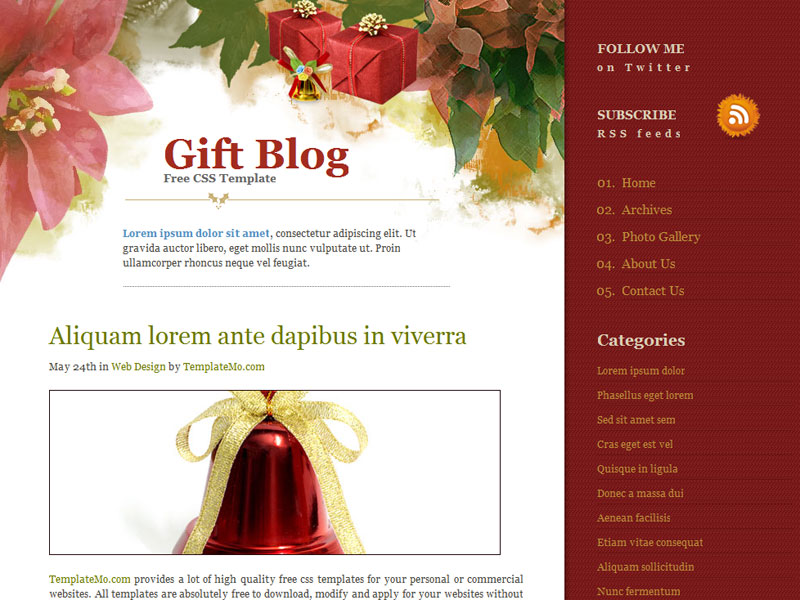 Validate XHTML & CSS. Suspendisse sed odio ut mi auctor blandit. Duis luctus nulla metus, a vulputate mauris. Integer sed nisi sapien, ut gravida mauris. Nam et tellus libero.