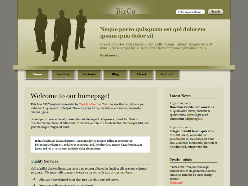 Validate XHTML & CSS. Suspendisse sed odio ut mi auctor blandit. Duis luctus nulla metus, a vulputate mauris. Integer sed nisi sapien, ut gravida mauris. Nam et tellus libero.